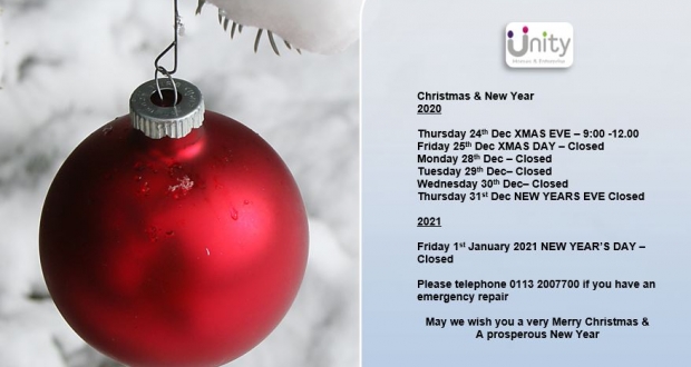 Unity Christmas and New Year Opening Times