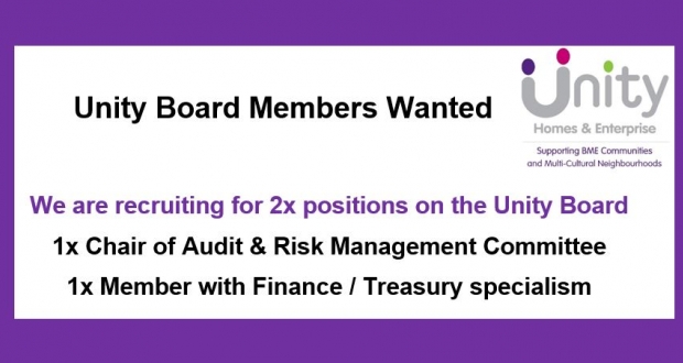 Unity is recruiting for 2 Board Member Positions 1X Chair of Audit and Risk Management Commitee and 1x Member with Finance/Treasury specialism