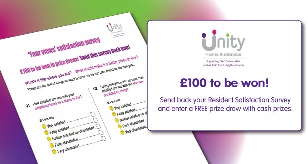 Last week, all Unity residents received a ‘Resident Satisfaction Survey’ together with a FREEPOST envelope. Residents who respond to the survey within the next few weeks will be automatically be entered into a prize draw and could receive a cash prize!